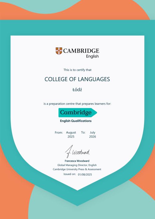 Od 2006 roku ściśle współpracujemy z British Council w zakresie przygotowań do egzaminów Cambridge. Otrzymujemy licencję na prowadzenie kursów przygotowujących do egzaminów Cambridge wydaną przez British Council w Polsce.